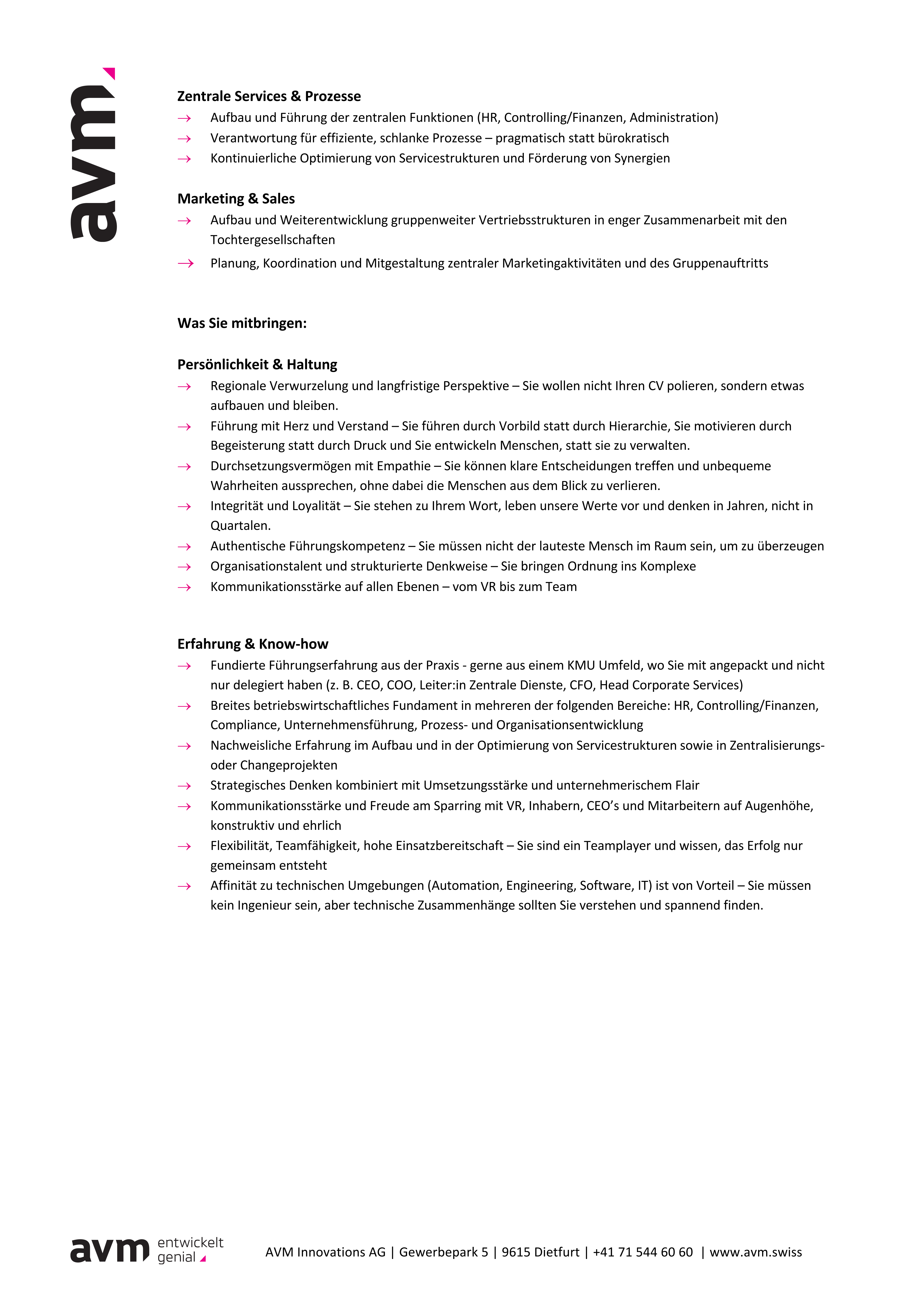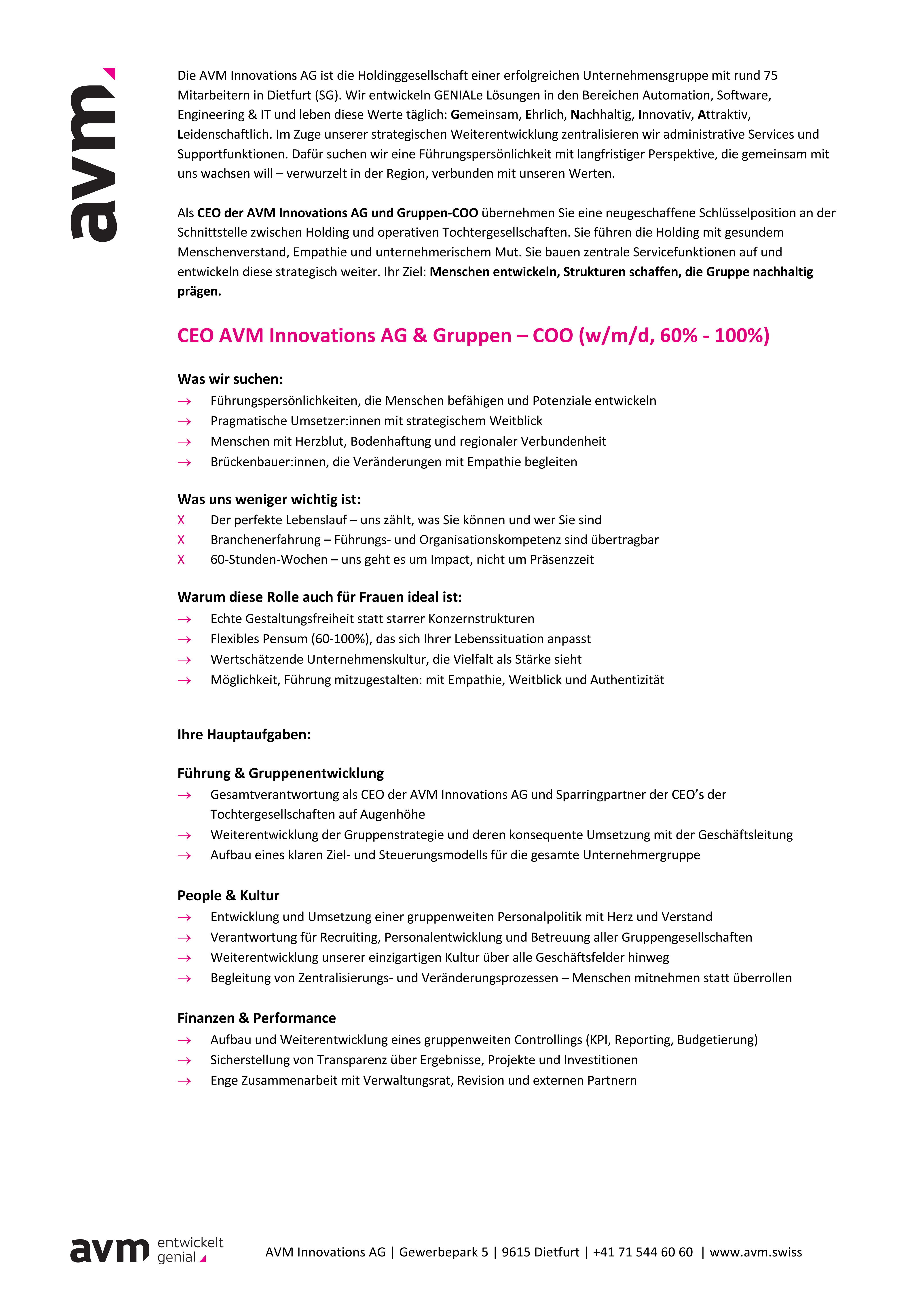 CEO AVM Innovations AG & Gruppen - COO 60-100%