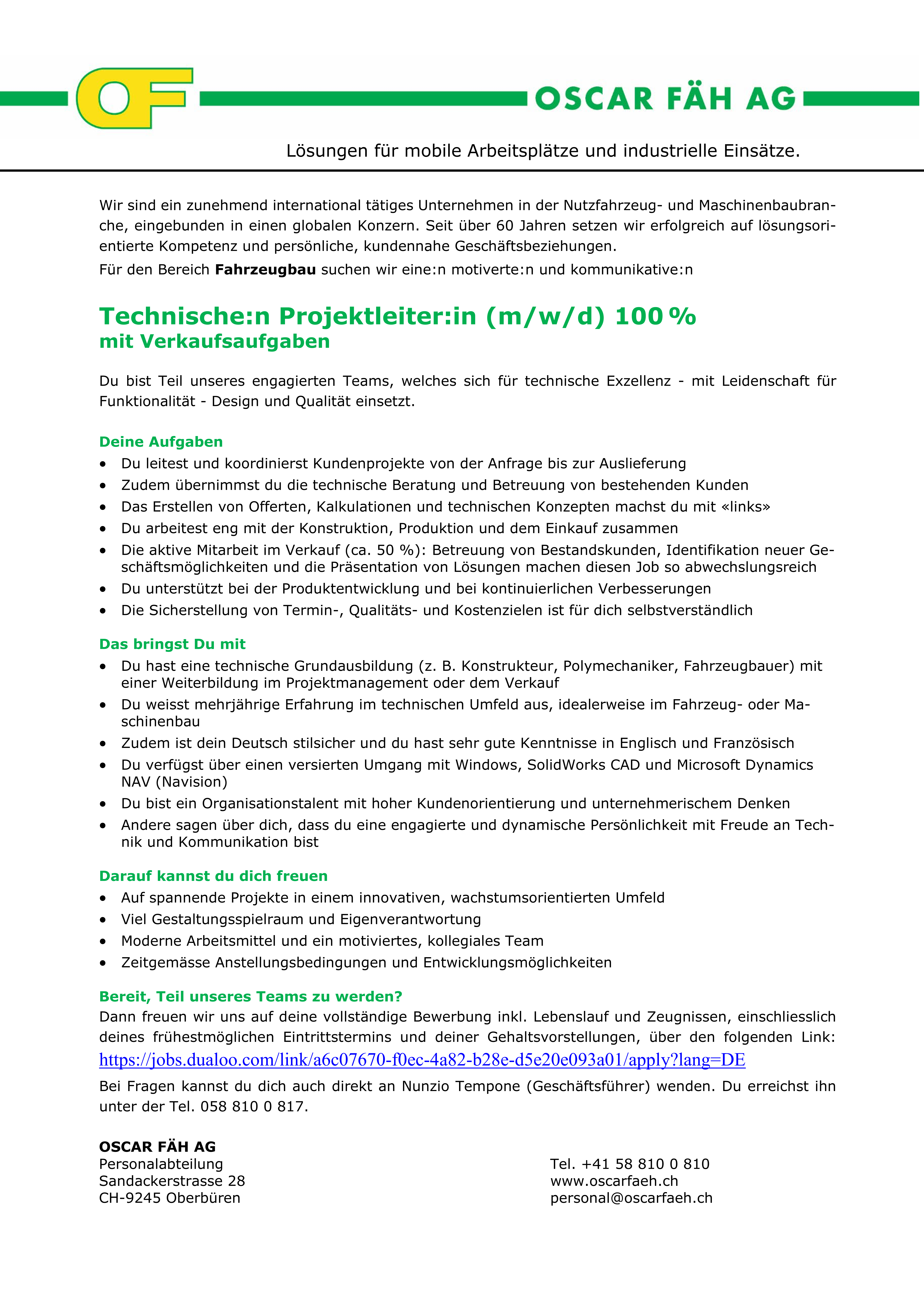 Technische:r Projektleiter:in mit Verkaufsaufgaben