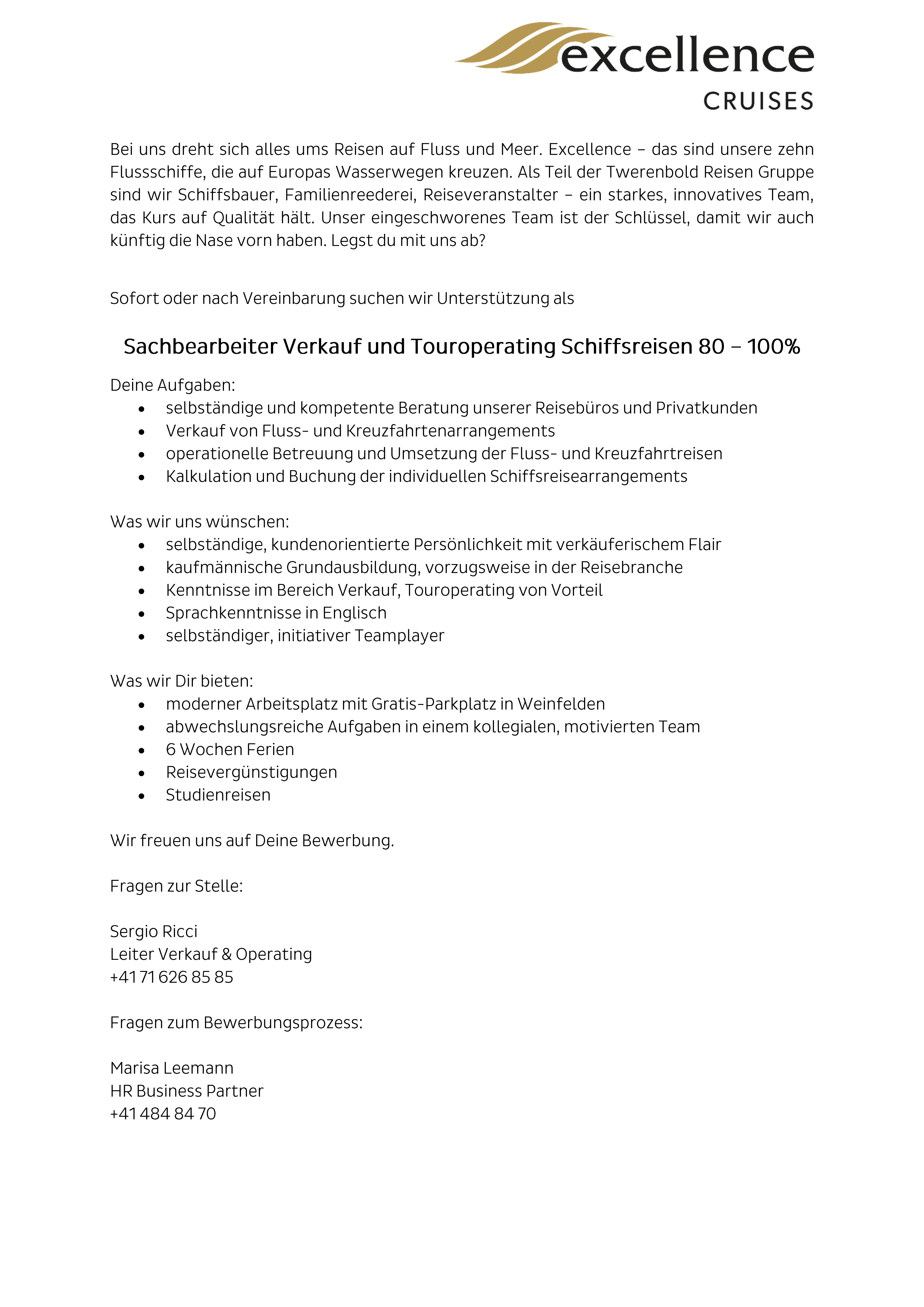 Sachbearbeiter Verkauf & Touroperating (m/w) 80-100%