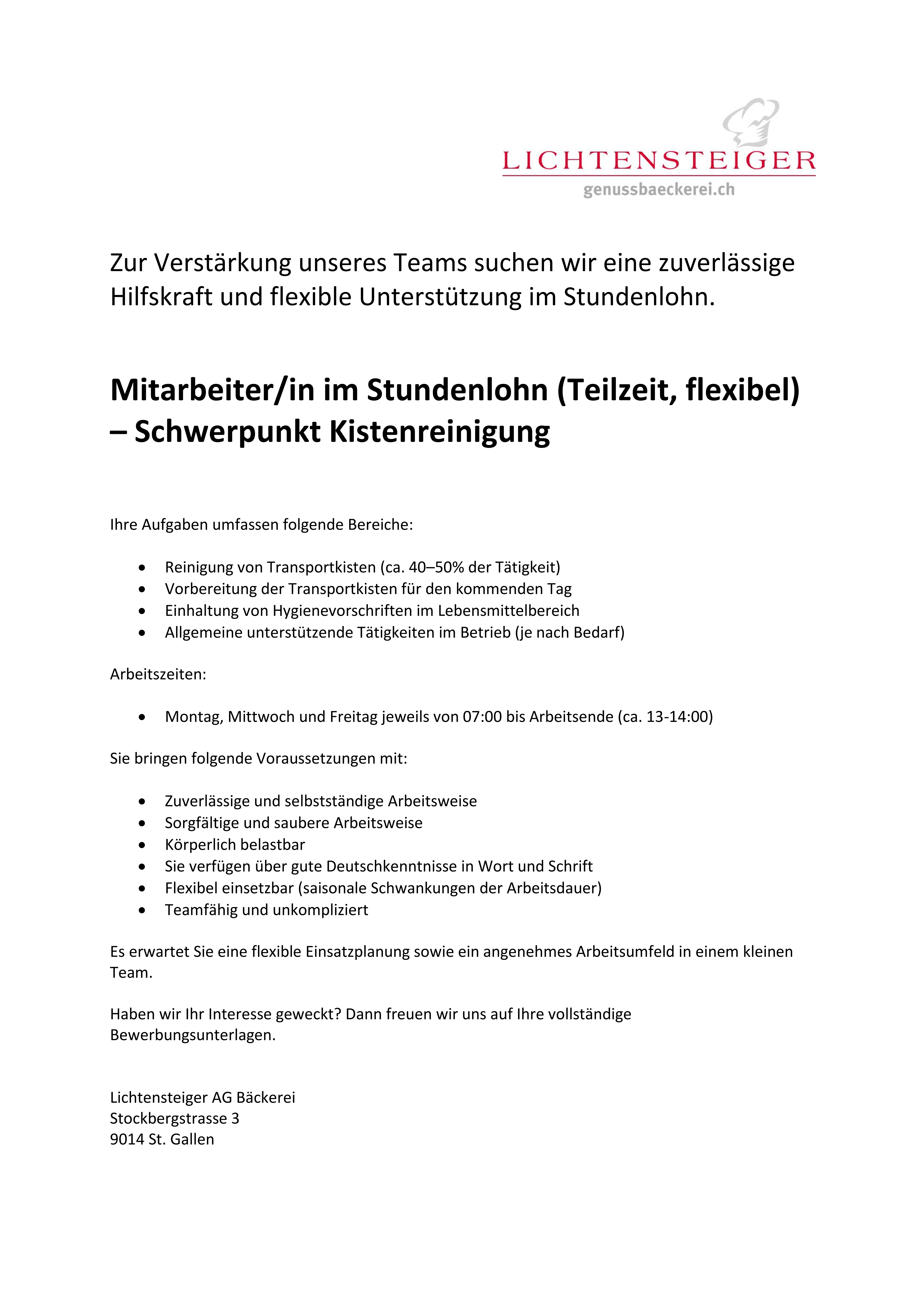 Mitarbeiter/in im Stundenlohn - Schwerpunkt Kistenreinigung 40-50%