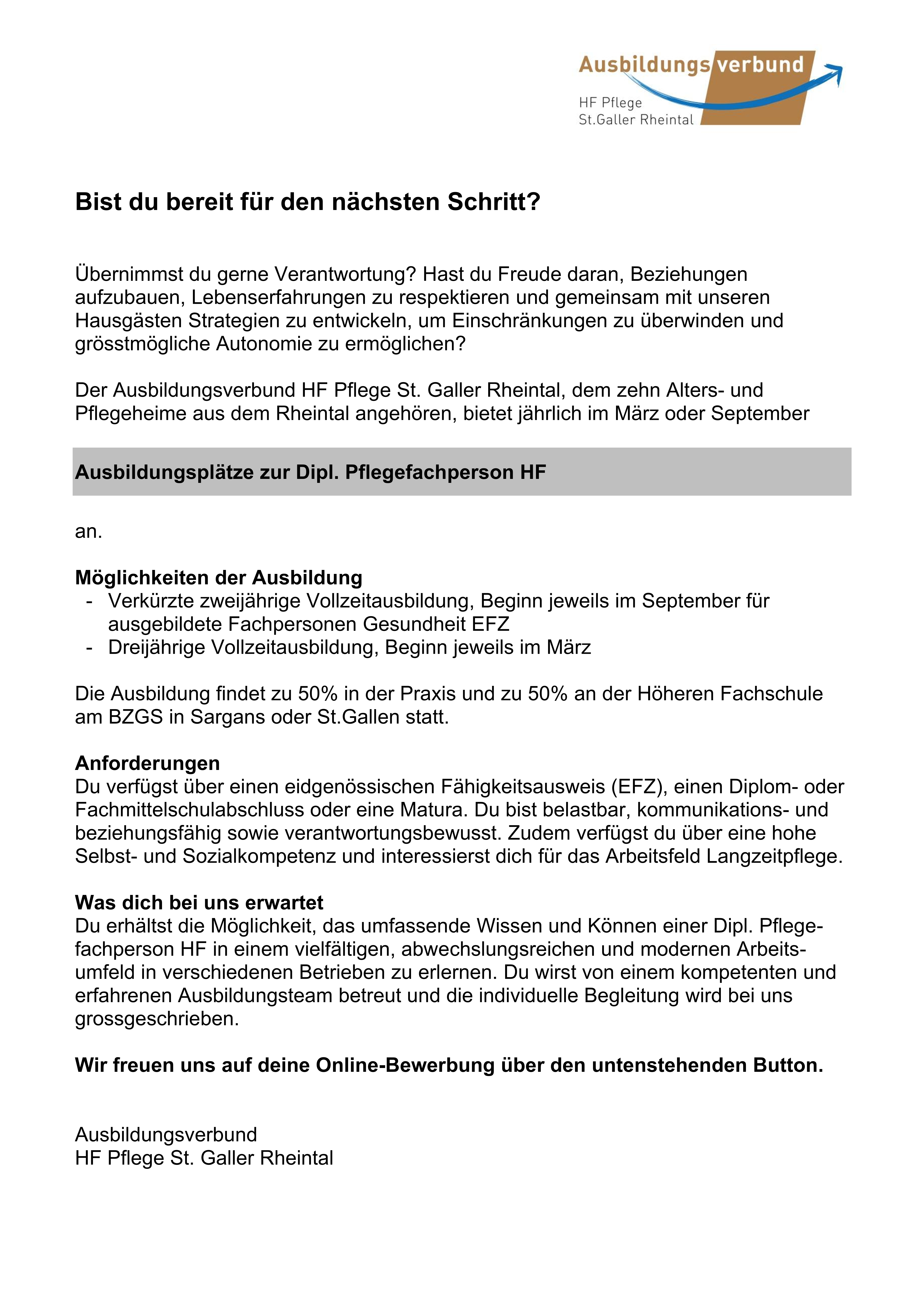 Ausbildungsverbund HF Pflege St. Galler Rheintal - Widnau