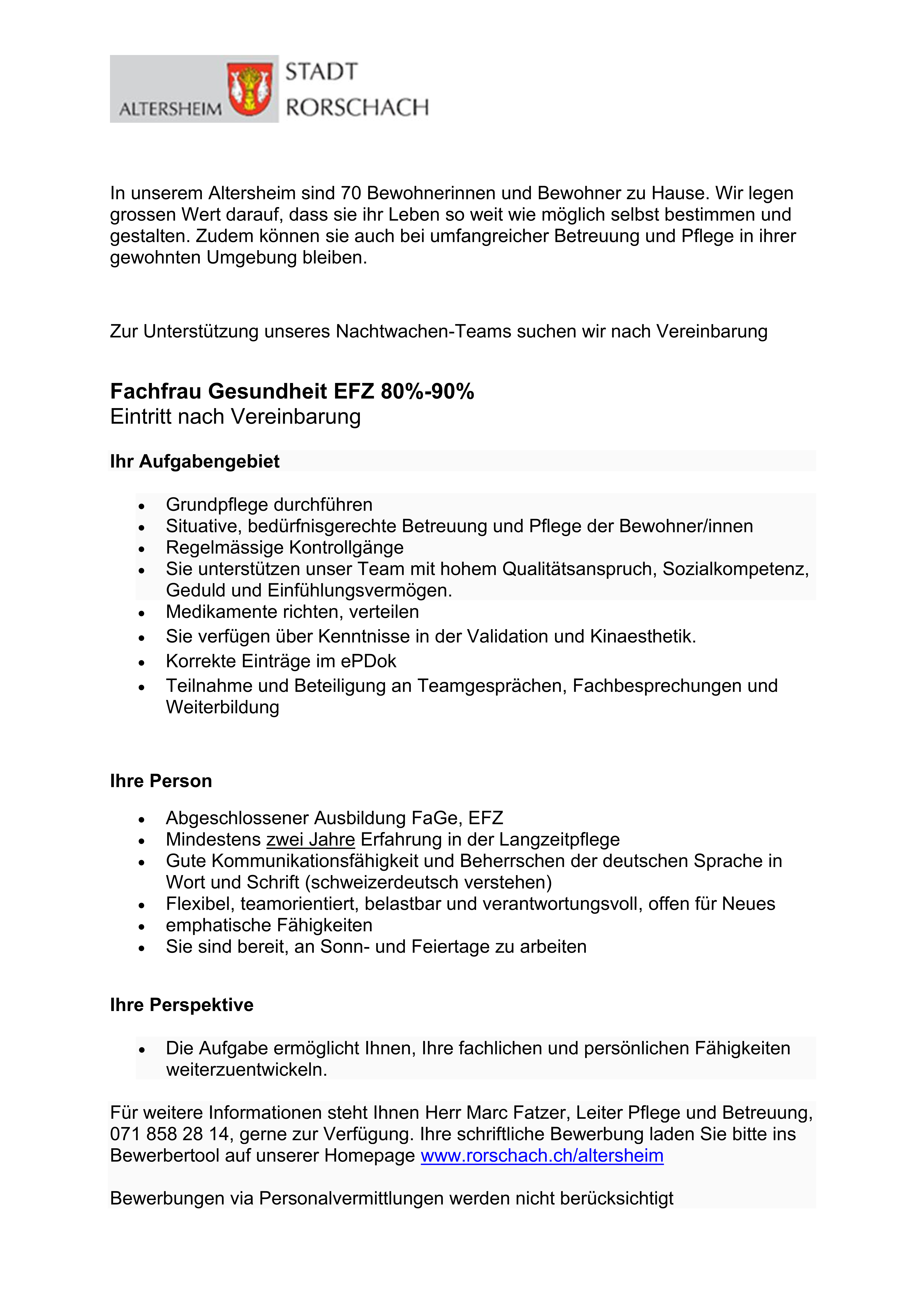Fachfrau Gesundheit EFZ (Dauernachtwache) 80-90%