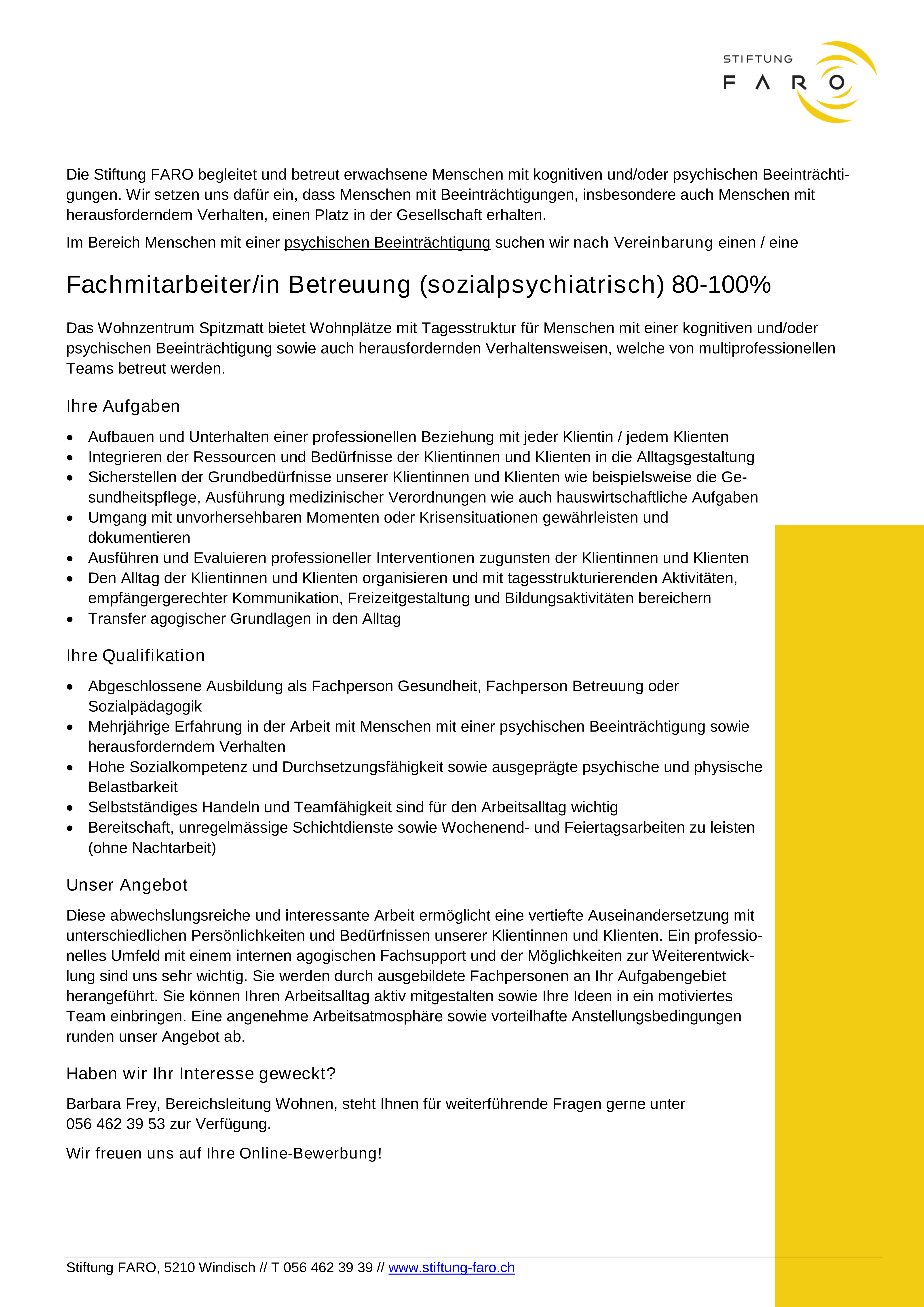 Fachperson Betreuung 80-100% (sozialpsychiatrisch) 80-100%