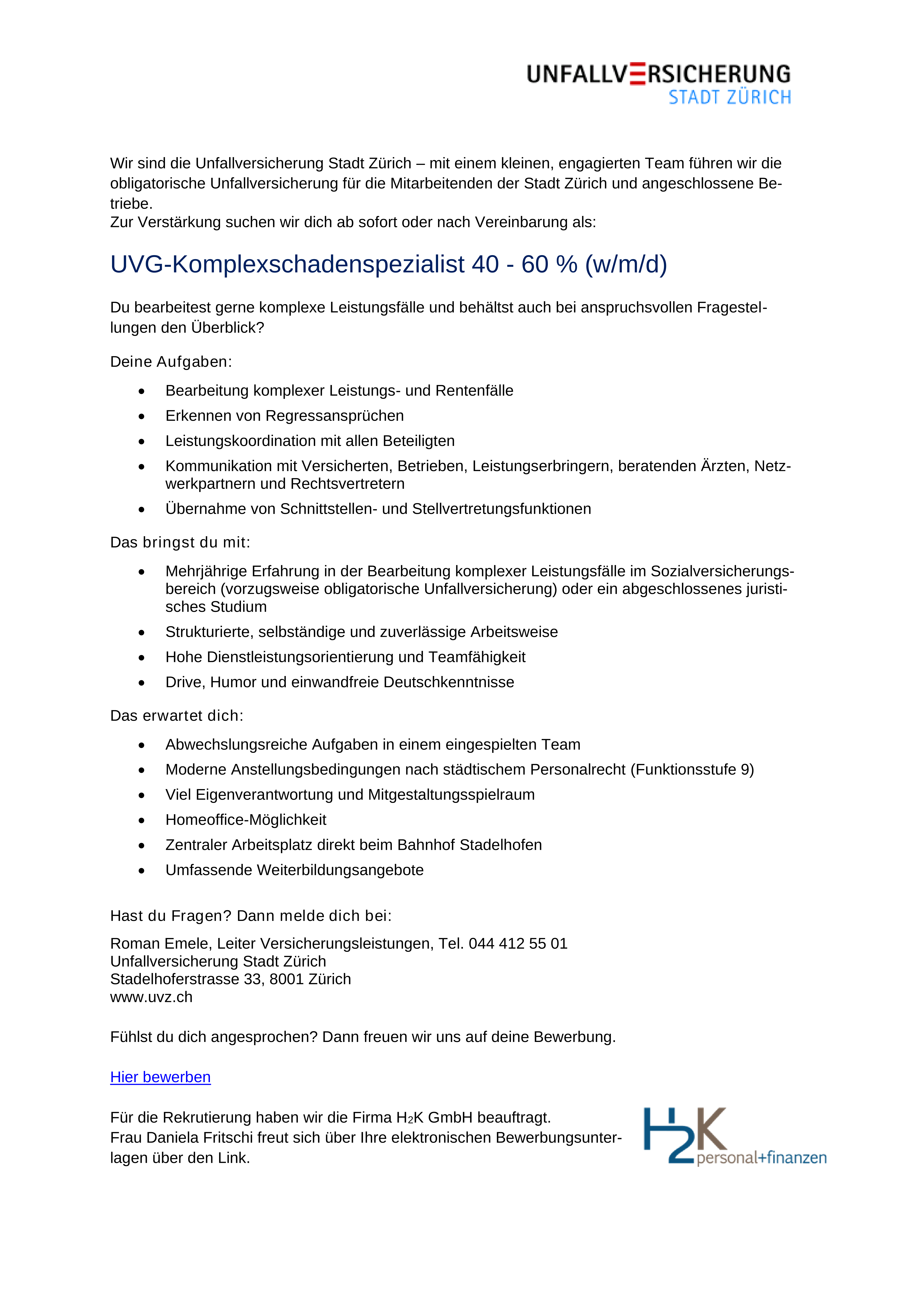 UVG-Komplexschadenspezialist 40 - 60 % (w/m/d) 40-60%