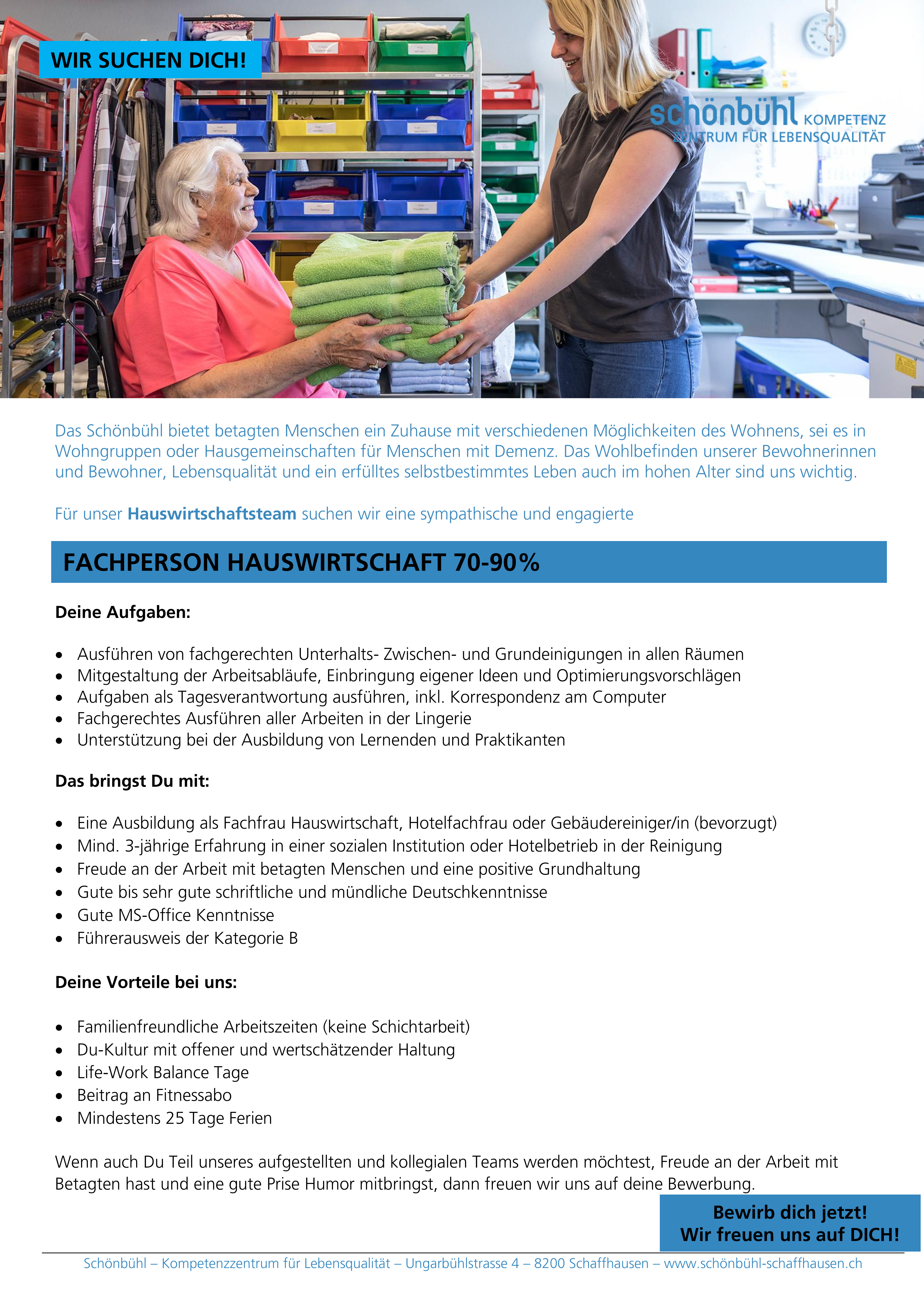 Fachfrau/-mann Hauswirtschaft 70-90%