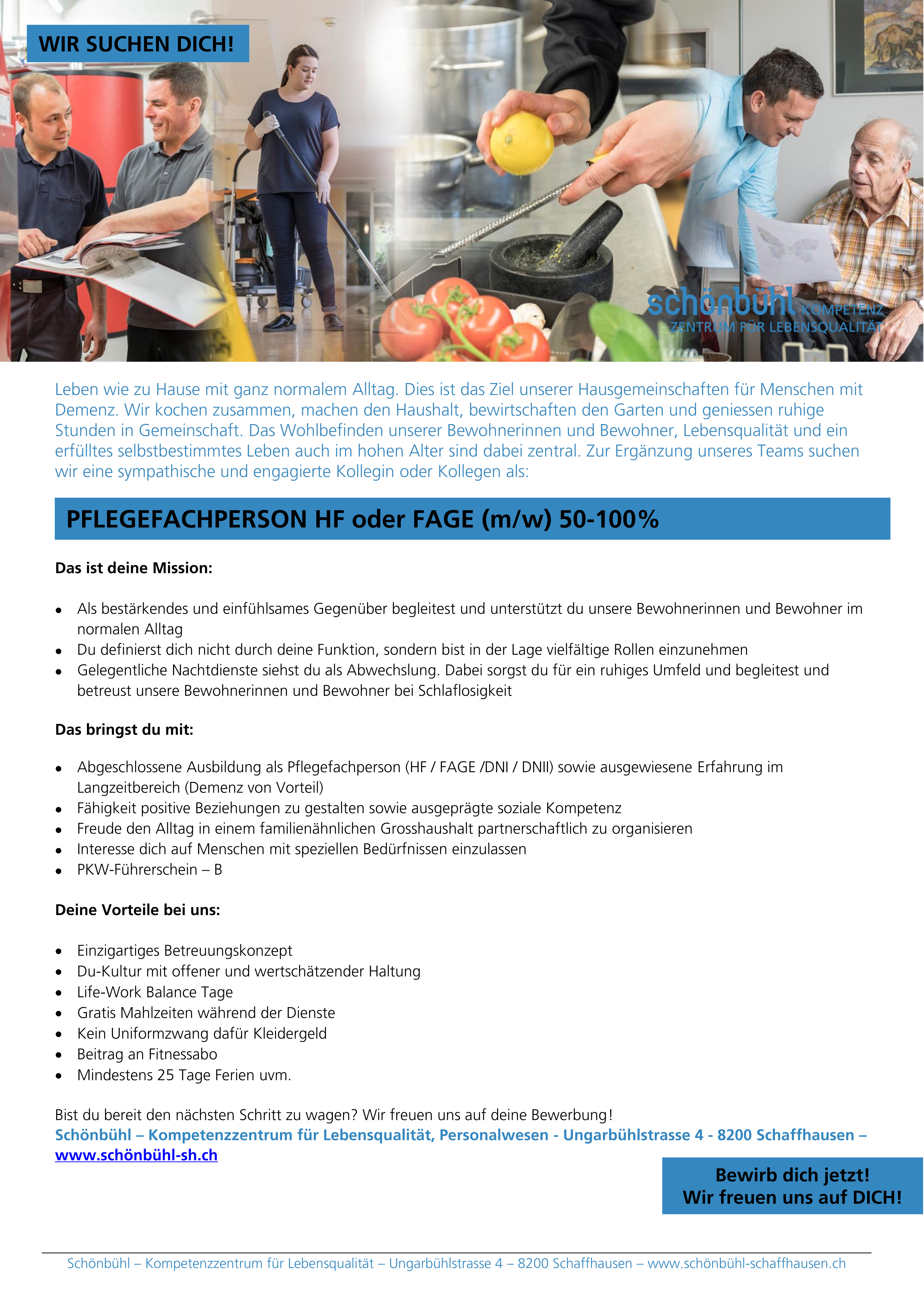 Pflegefachperson (HF, FAGE) Wohngruppe 50-100%